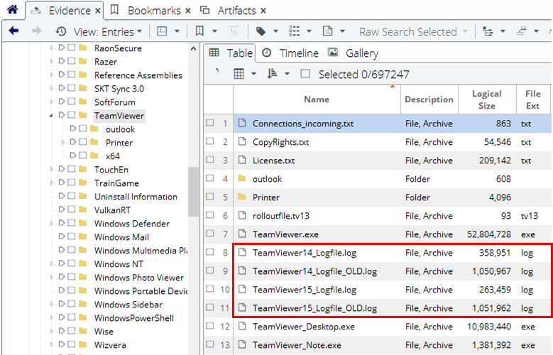 일반적인 수사/분석 관점의 경우는 피해자의 PC에서 가해자의 정보 또는 가해자와 연결될 만한 정보를 찾아내는 것이 중요하다. 이런 관점에서 본다면 팀뷰어에서 큰 의미가 있을만한 로그는 두 가지이다.