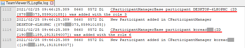 Device A(Support PC)의 경우 항상 type 6 and role 6로 로그가 기록되고 Device B(Client PC)의 경우 type 3 and role 3로 남는다. 만일 나중에 팀뷰어 로그를 분석할 때 오히려 이 두개의 숫자가 헷갈린다면 쉽게 찾을 수 있는 방법은 “공격자는 항상 사건에 있어 우위를 점한다. 따라서 번호가 높다.”라고 기억하면 한방에 확 와닿을 것이다.