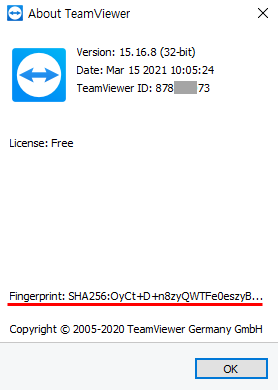 협상이 끝나면 SHA256으로 해시화한 fingerprint를 교환하는데, 9~10자리 숫자로 구성된 Teamvier ID와 같이 fingerprint 값도 기기마다 모두 다르다. 사용하는 이유는 원격 대상이 진짜 그 상대 기기가 맞는지 확인 및 검증하기 위해서 사용된다.