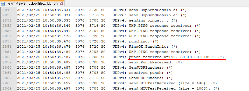 따라서 팀뷰어 로그에서 아래와 같이 사설 아이피 대역이 나오는 이유이다.