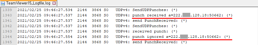 로그에서도 보면 UDPv4: punch 등과 같은 키워드로 로그를 남기고 있다. 해당 로그를 통해 상대방의 공인 IP 주소를 알 수 있다.